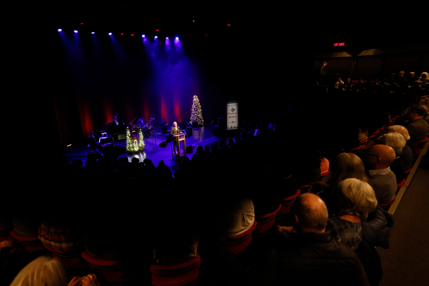 I am happy to bring you these photos and this audio from the Paul Wells Holiday Show, presented by Cameco, that took place last Saturday night, December 6, at the Azrieli Studio of Canada’s National Arts Centre. My podcast feed has been too quiet lately. This will help change that.