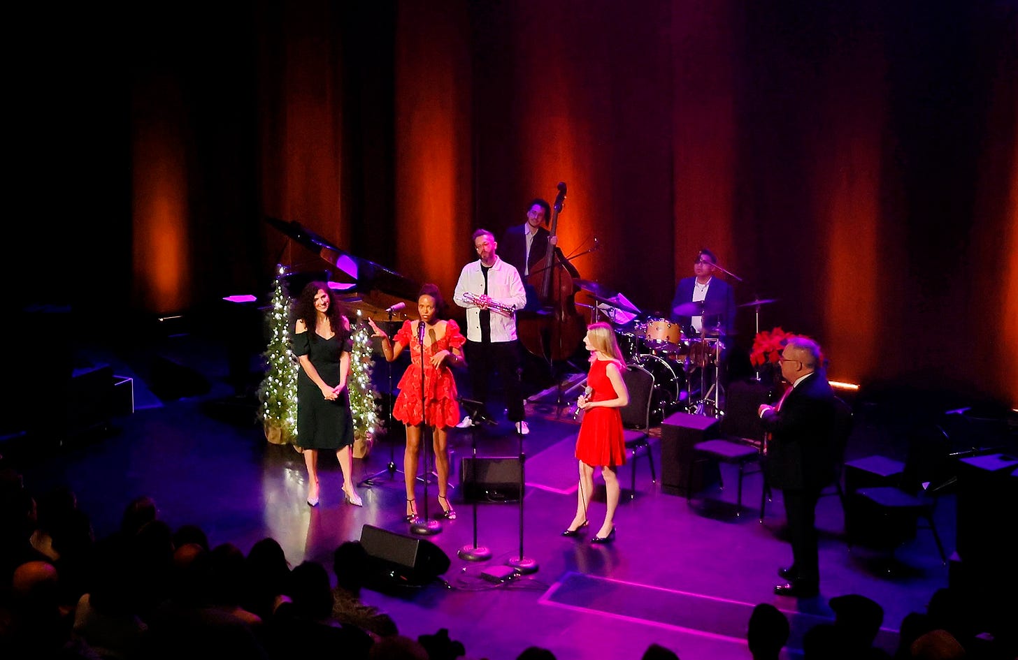 I was, of course, hardly the evening’s only entertainment. We heard songs from three of Canada’s finest singers: Ottawa-based Juno winner Kellylee Evans, Montreal-based three-time Juno winner Caity Gyorgy, and Toronto-based Juno winner and Grammy nominee Laila Biali. (Kellylee has her own Winter Song concert, another NAC holiday tradition, next week. Information and tickets are here. It’s always a wonderful evening out.) At the end of the night, all three singers joined forces on Laila’s arrangement of “Joy to the World.”